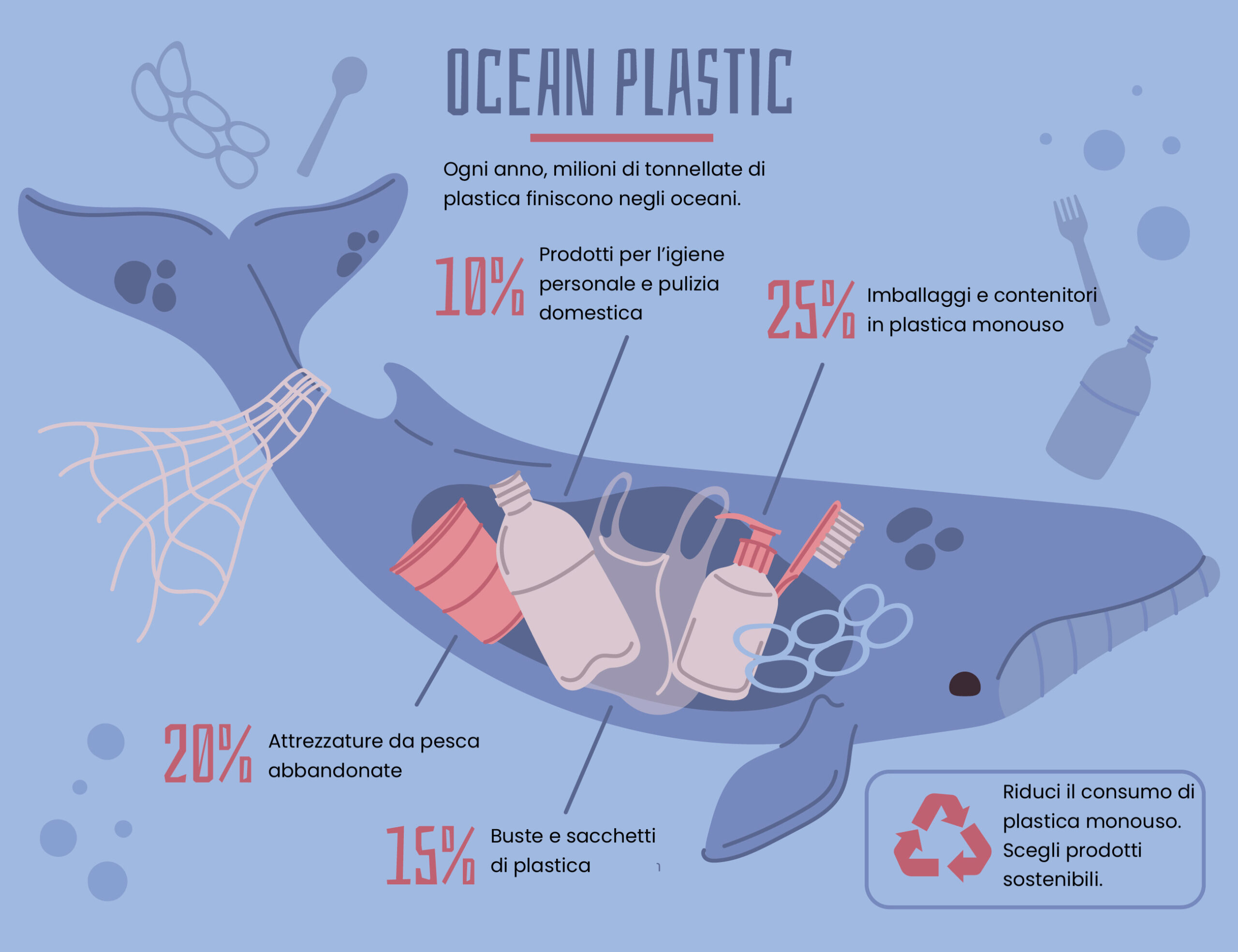 Ogni anno circa 8 milioni di tonnellate di plastica finiscono negli oceani (Fonte: UNEP)